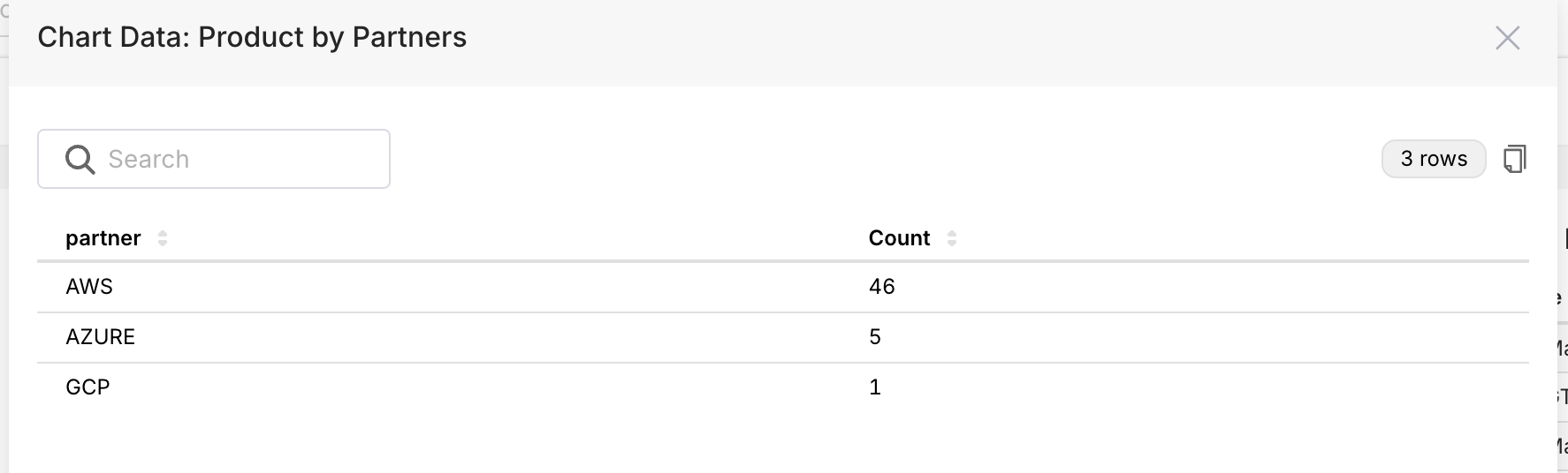 All charts within the dashboard can be viewed as tables, providing a detailed, raw data view behind the visualizations. This option is useful for users who want to analyze data at a granular level, such as verifying numbers or conducting deeper analysis beyond the chart.