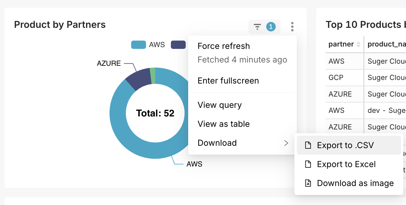 Export to CSV or Excel: You can export chart data to CSV or Excel for further analysis or reporting.