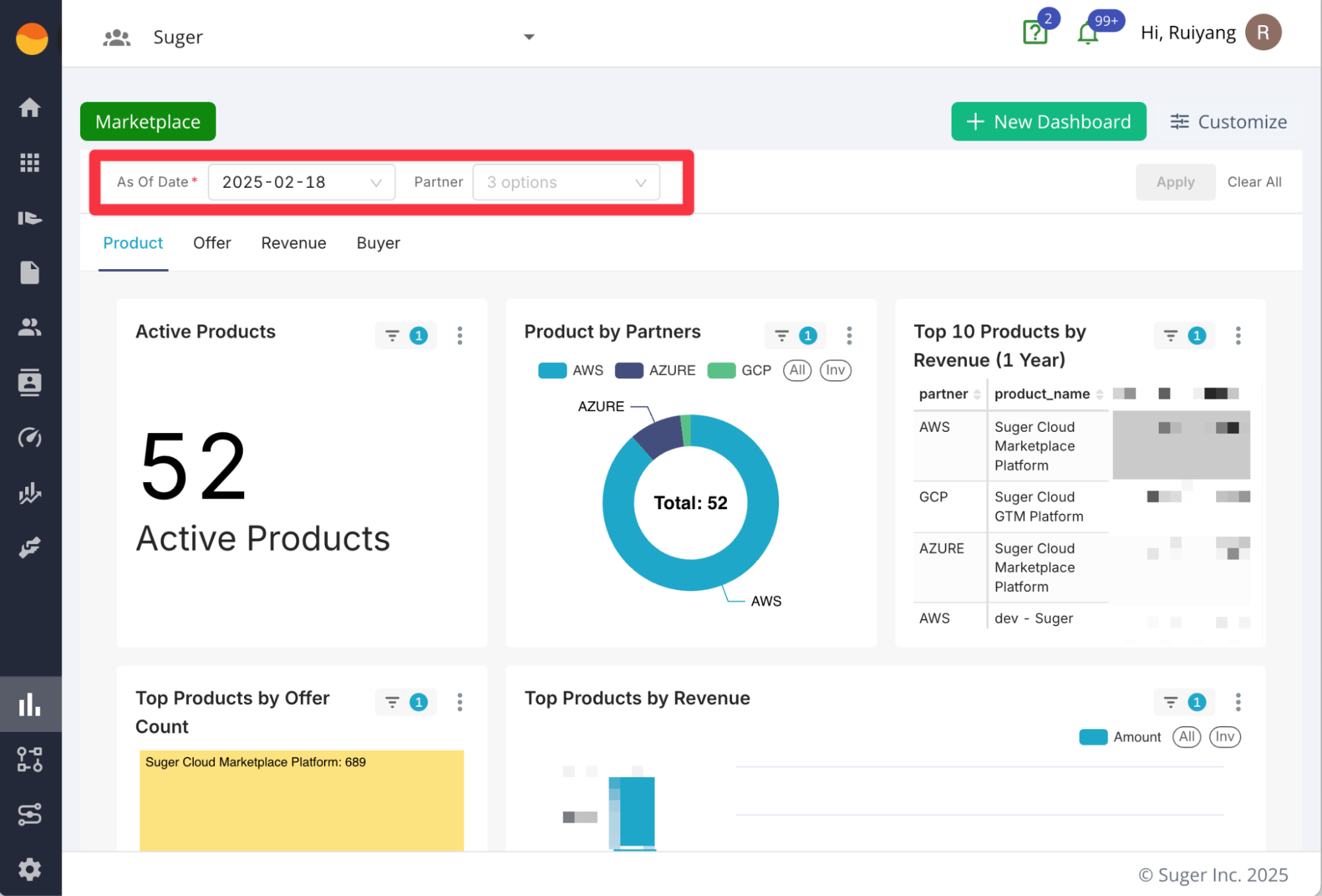 Partners: Filter data by cloud partners, such as AWS, GCP, or Azure, to narrow down insights by specific partners.