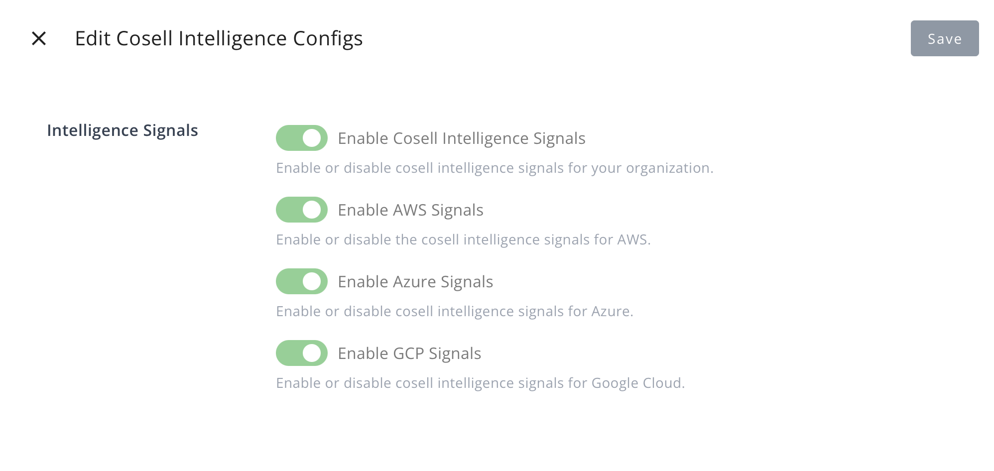 Use the toggle for "Enable Cosell Intelligence Signals" to show or hide all the intelligence cards at once.