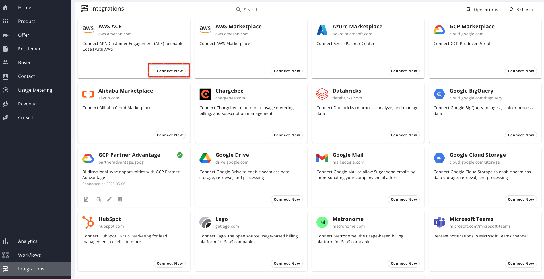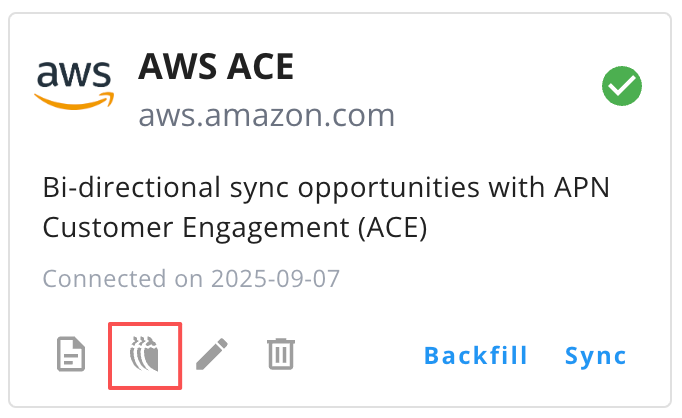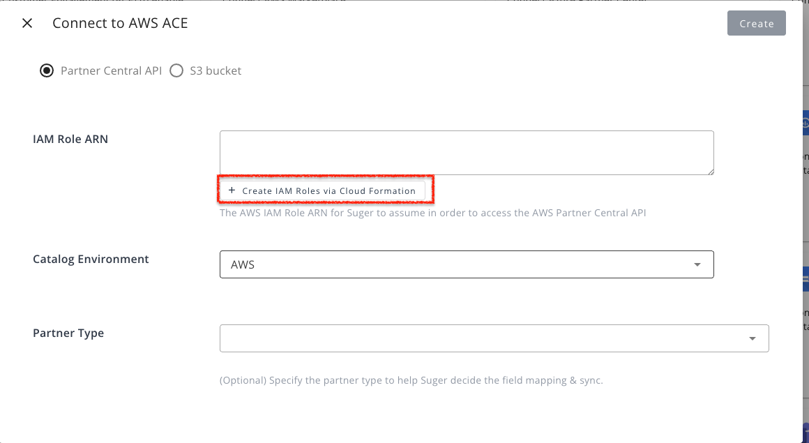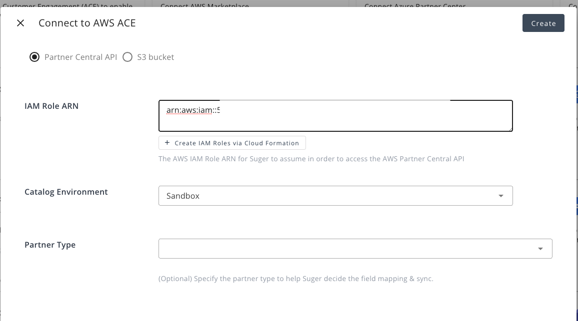 - In the Suger Console, go to Integrations → AWS ACE.