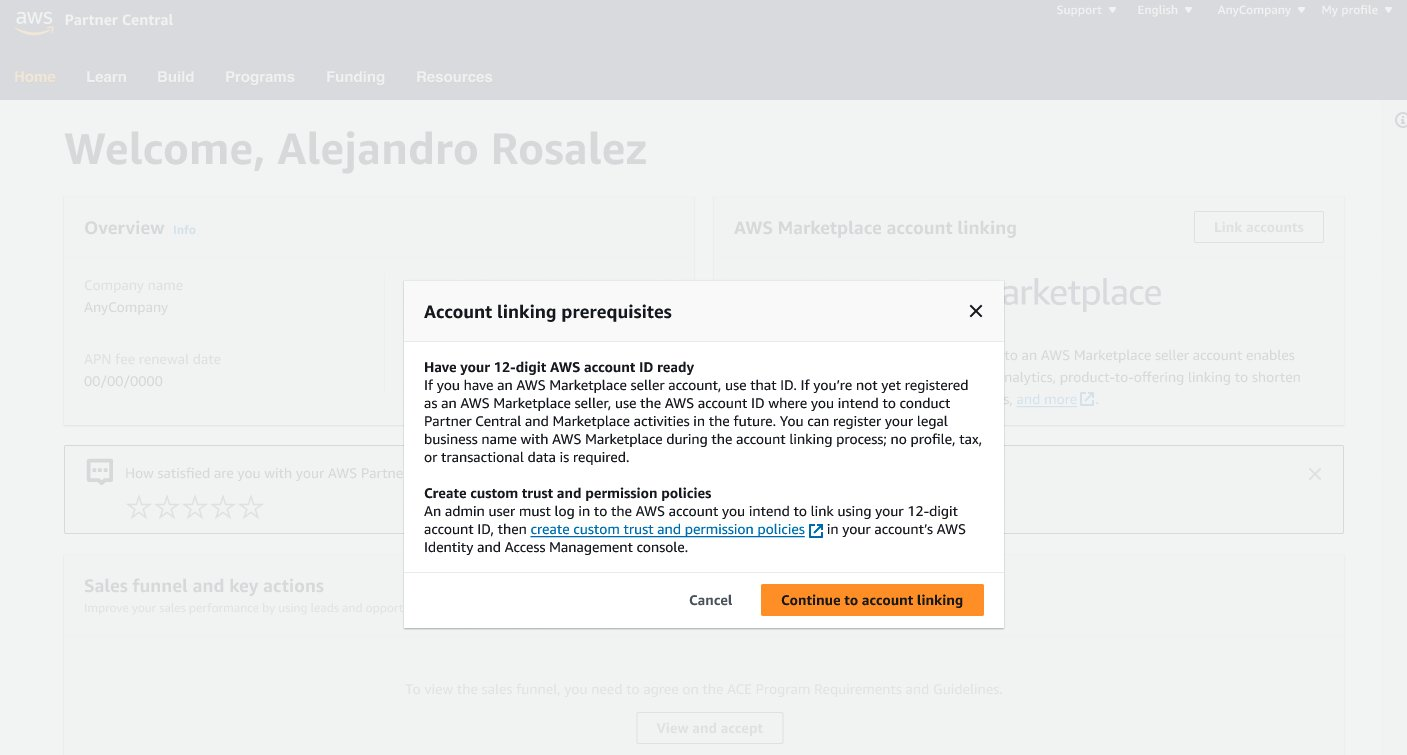 In most cases, this involves granting read-only IAM permissions and allowing Partner Central to create the required roles (e.g., Cloud Admin, Alliance, ACE). We recommend letting your IAM Administrator review the official AWS guide to ensure compliance with your company’s security practices.
