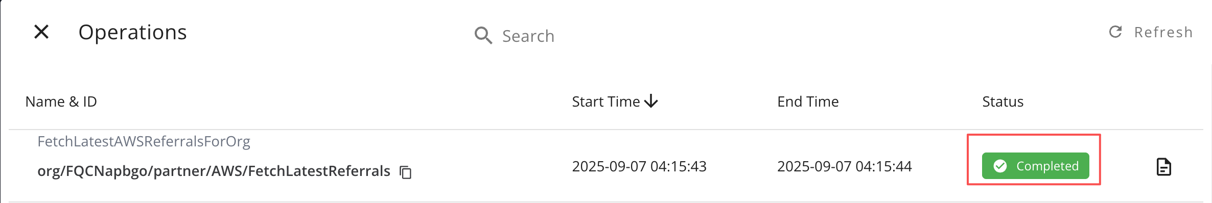 Go to Settings → Integrations → AWS ACE → Operations and wait until the inbound sync status changes to Completed.