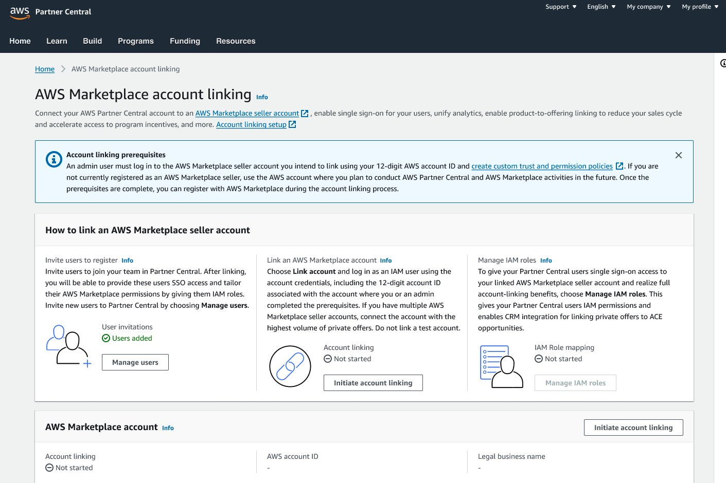 - AWS recommends linking an account dedicated to APN engagements.