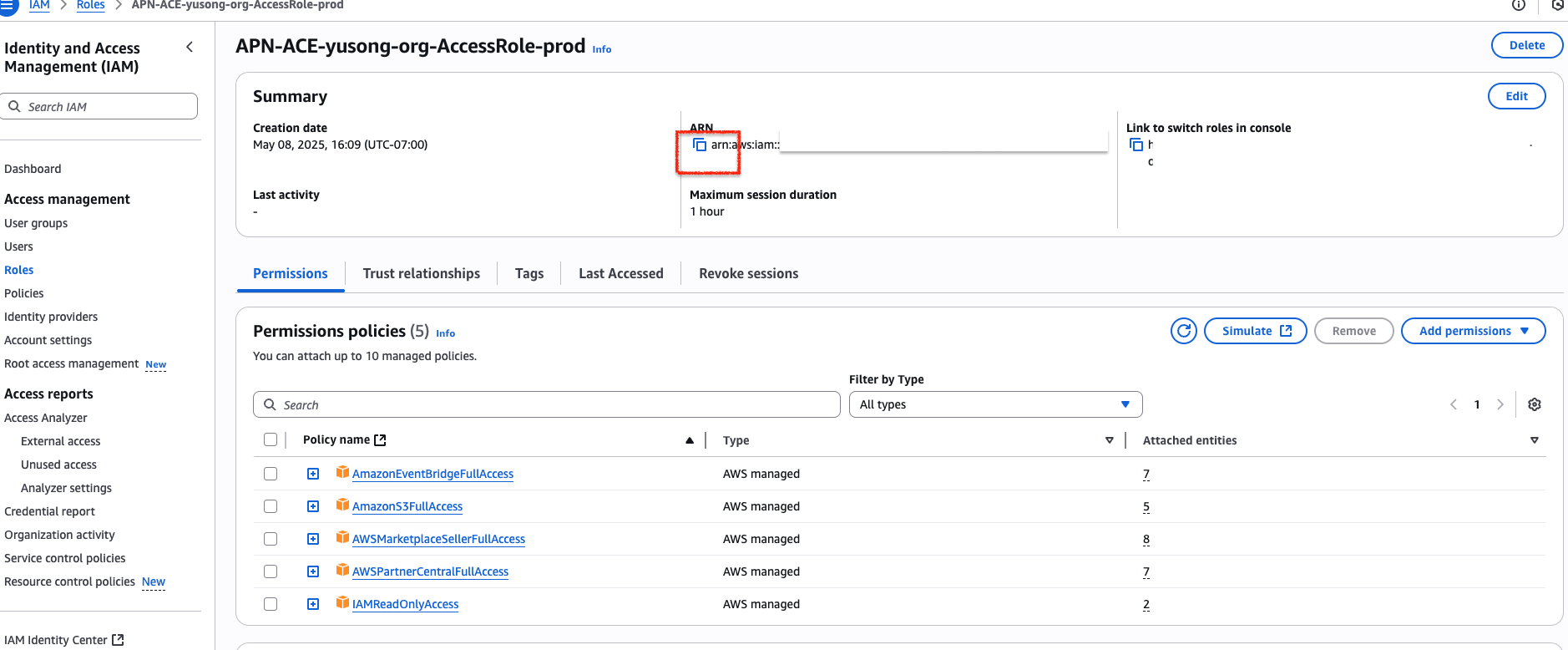 - Copy the ARN of the generated role.