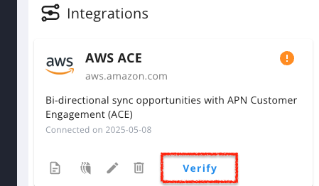 Once verified, the system will automatically create an EventBridge rule and an API destination in your AWS account to listen for APN opportunity changes.