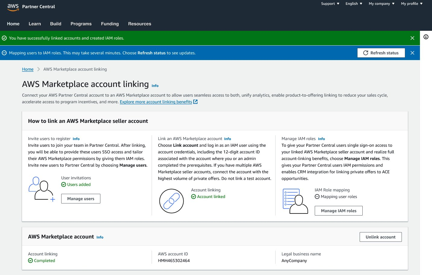 - This ensures that your Partner Central users have the correct permissions from the start. Bulk assignment vs. manual mapping: Bulk assignment is only available during the linking workflow. You can still assign or adjust IAM roles later, but it must be done manually after linking.