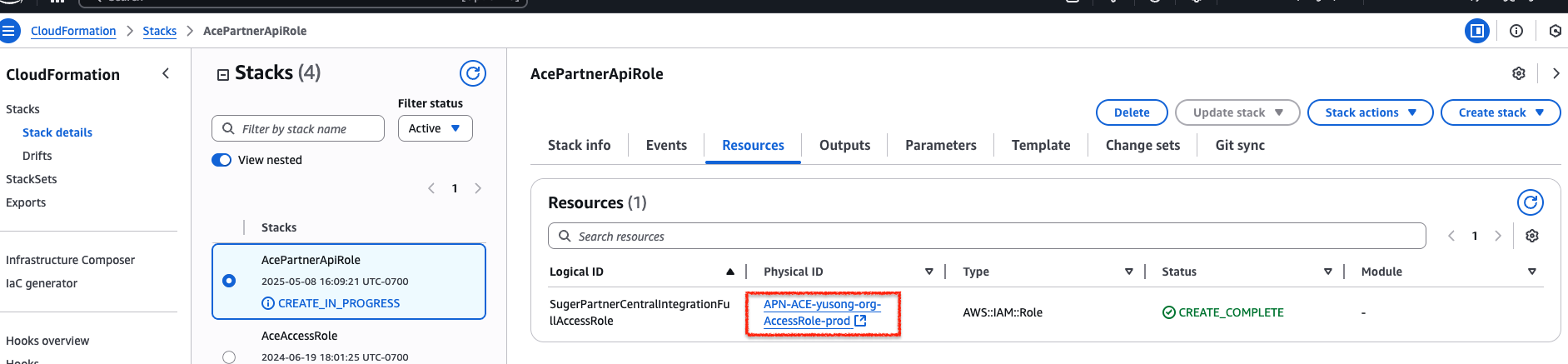 - Find the created IAM role under the Resources tab or by navigating to IAM → Roles.