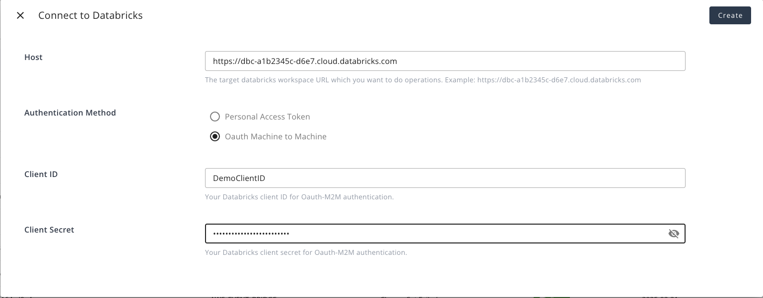 Edit is not supported for Databricks integration. For security, if you need to update credentials, delete the integration and recreate it.