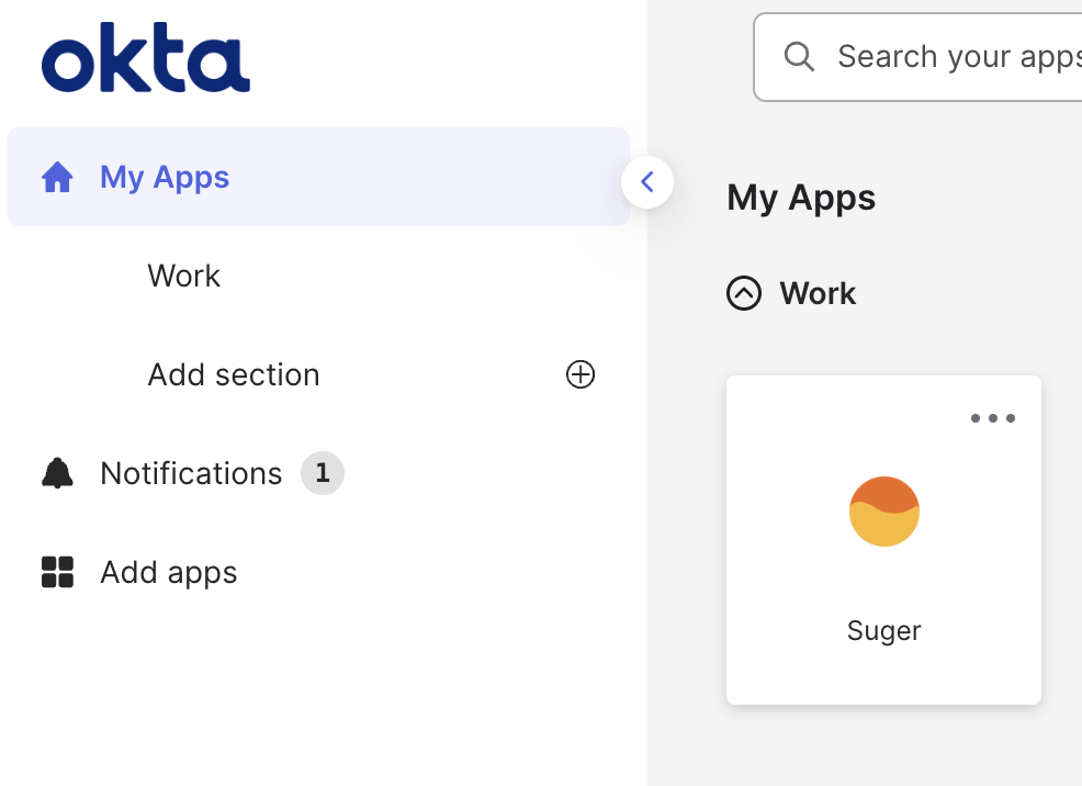 - The Suger app will now appear on the Okta dashboard for assigned users.