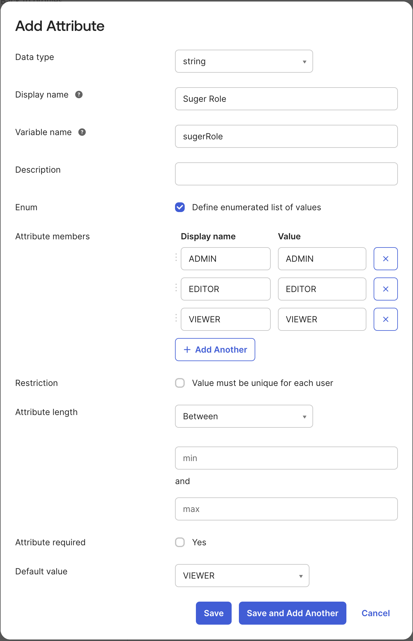 ADMIN,EDITOR,VIEWER - Attribute required: