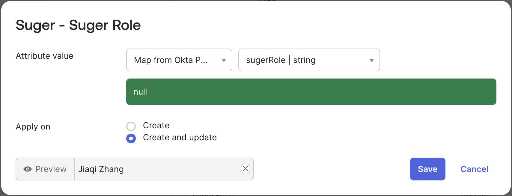 sugerRoleand click its edit icon. - Set the mapping:
