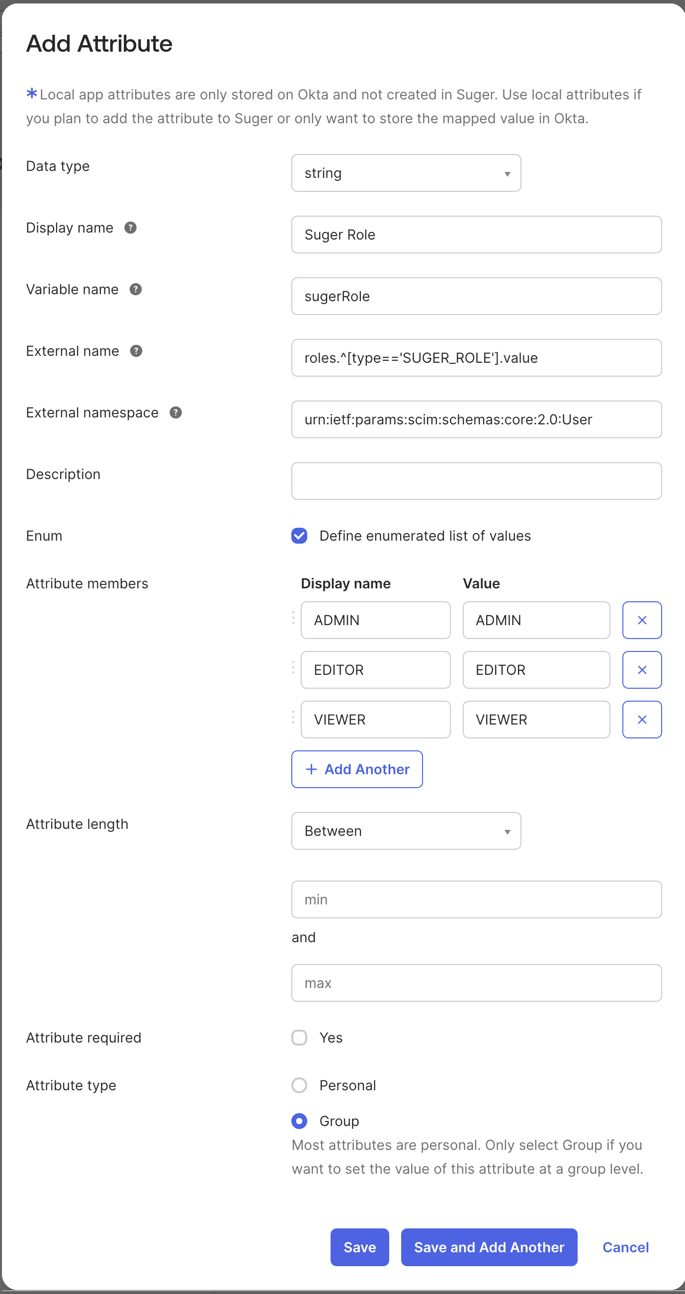 Map User Roles: To manage user roles (Admin, Editor, Viewer) in Suger via Okta, you must create a custom attribute and map it.