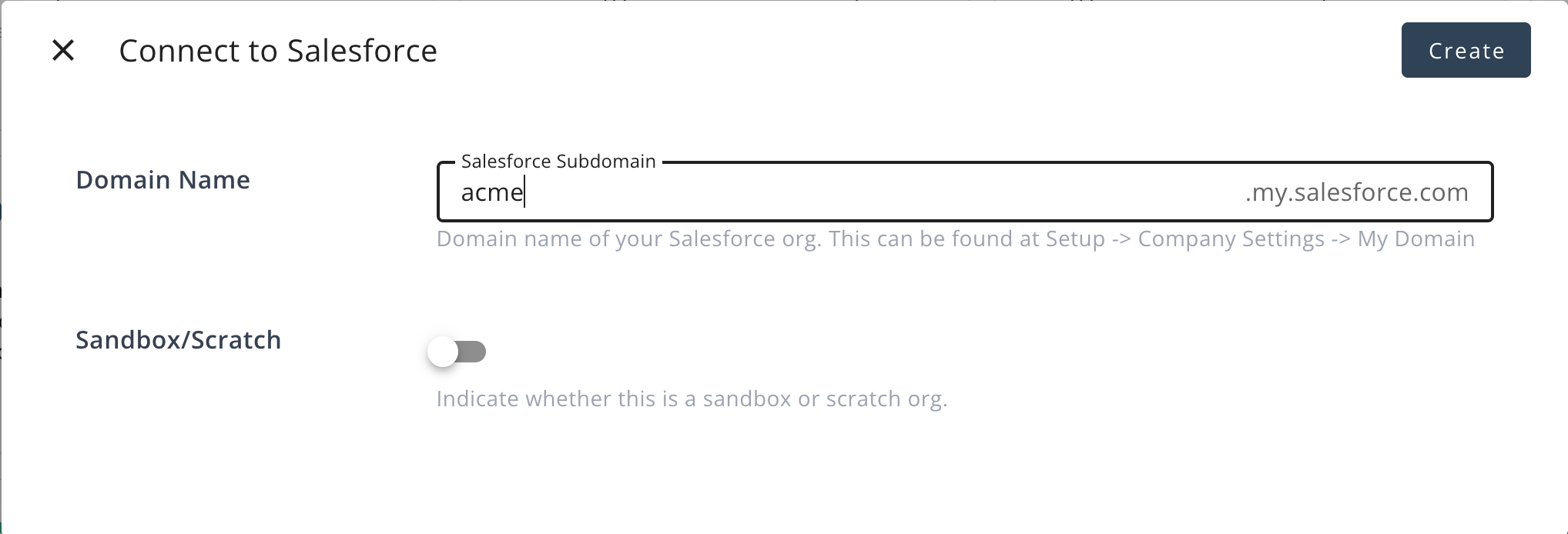 - Enter your Salesforce Subdomain (e.g., acme.my.salesforce.com).