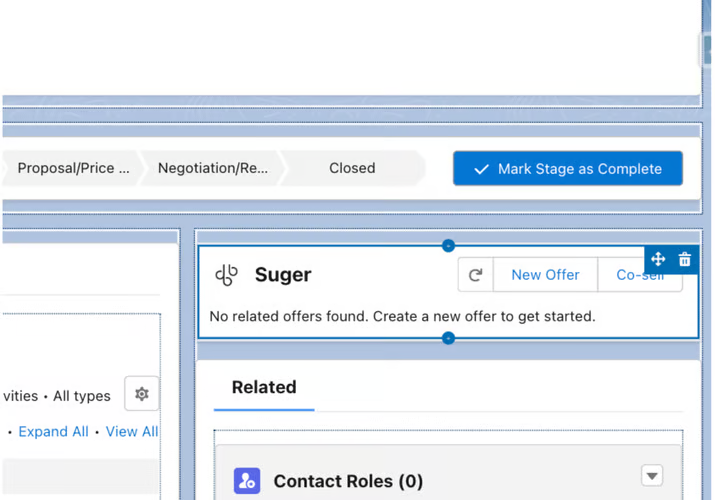 - Drag and drop Suger Opportunity Quick Panel onto the page layout.