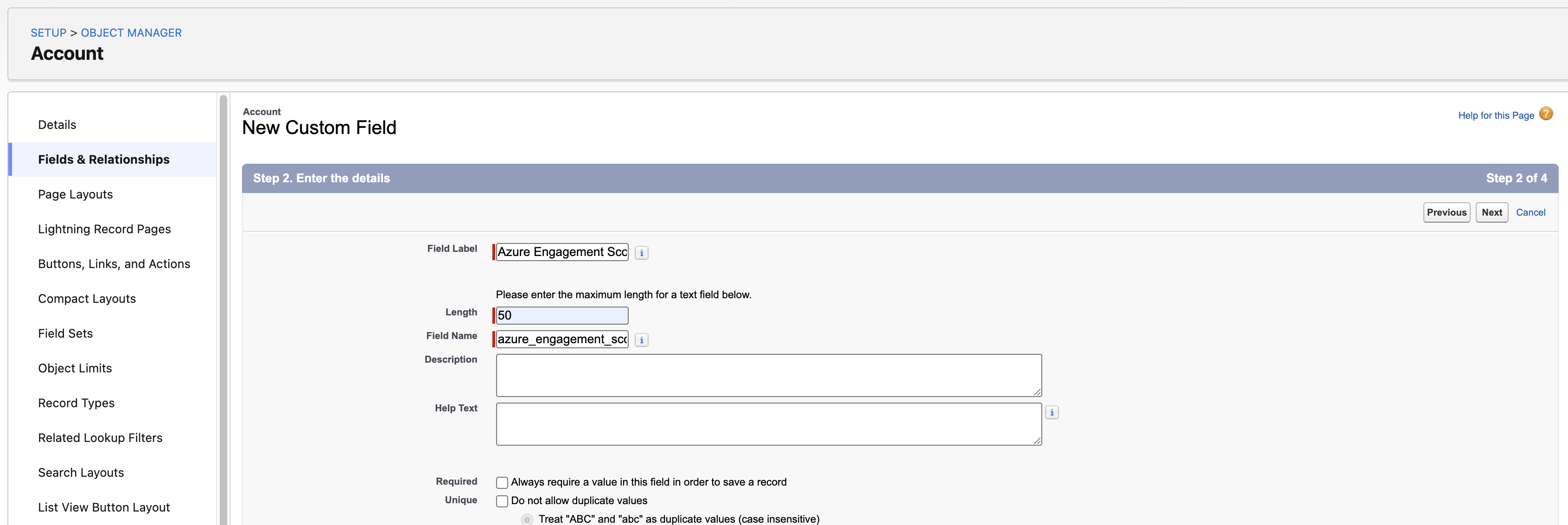 Enter a Field Label (e.g., "Azure Engagement Score")