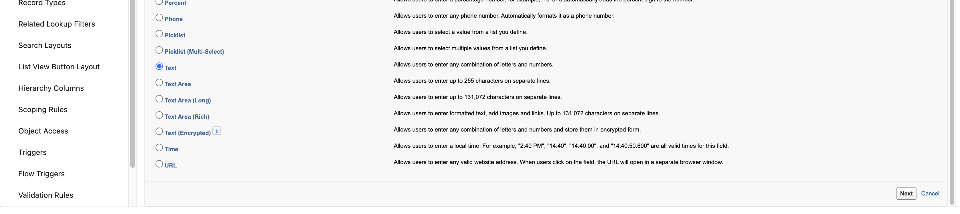 Choose the appropriate field type (e.g., Text for scores and general data)