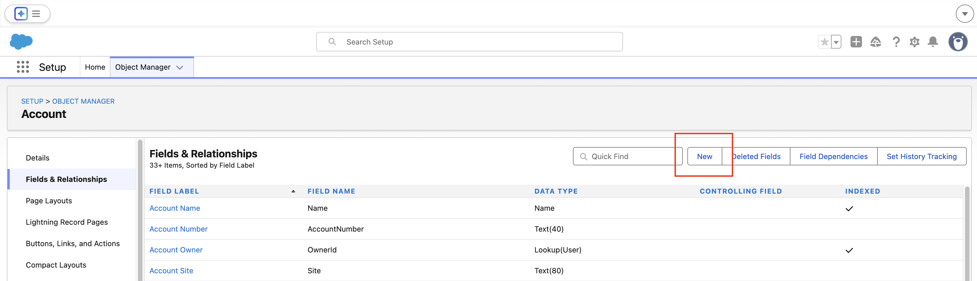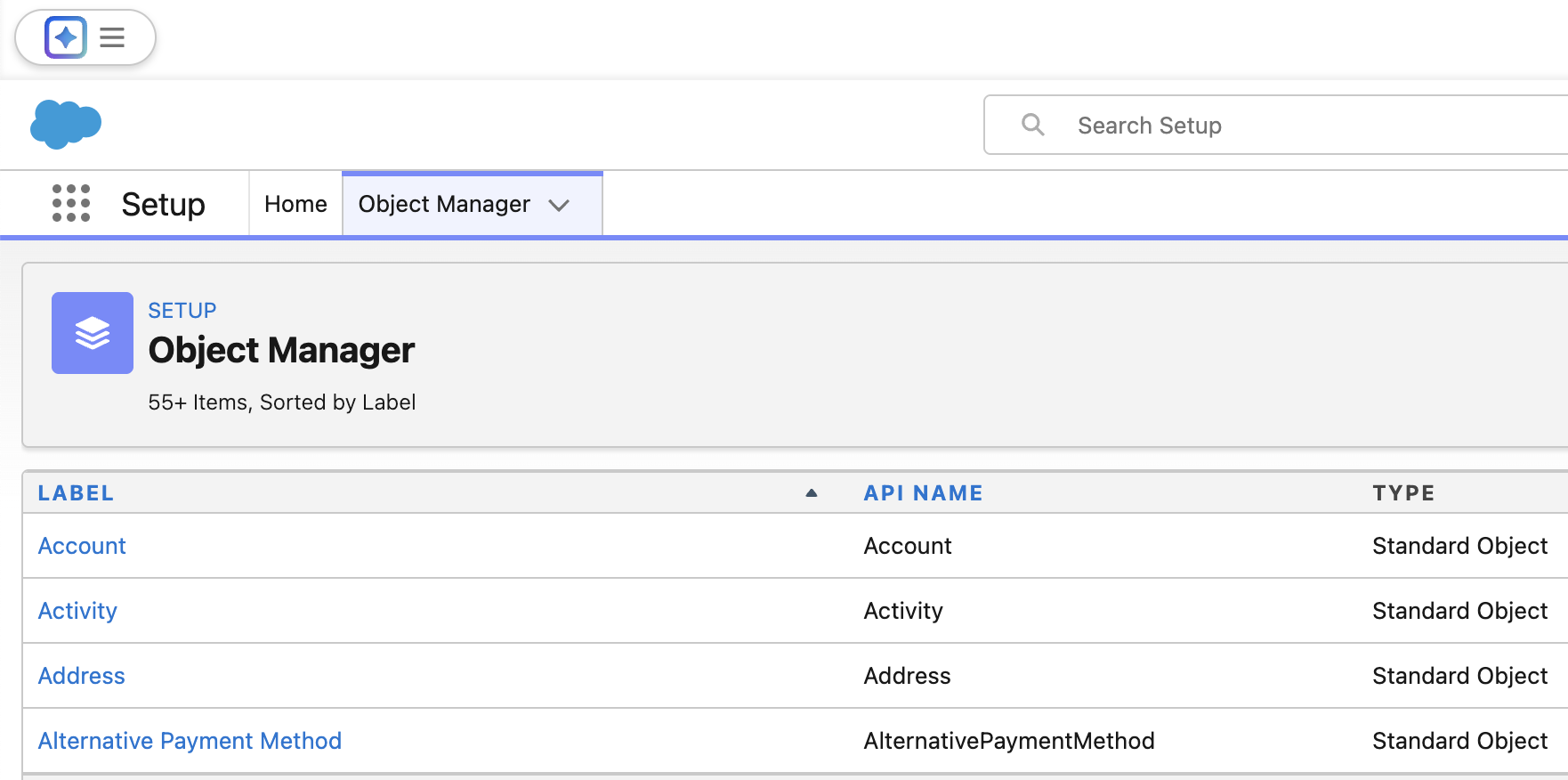 Go to Setup → Object Manager → Select your object (e.g., Account, Opportunity)