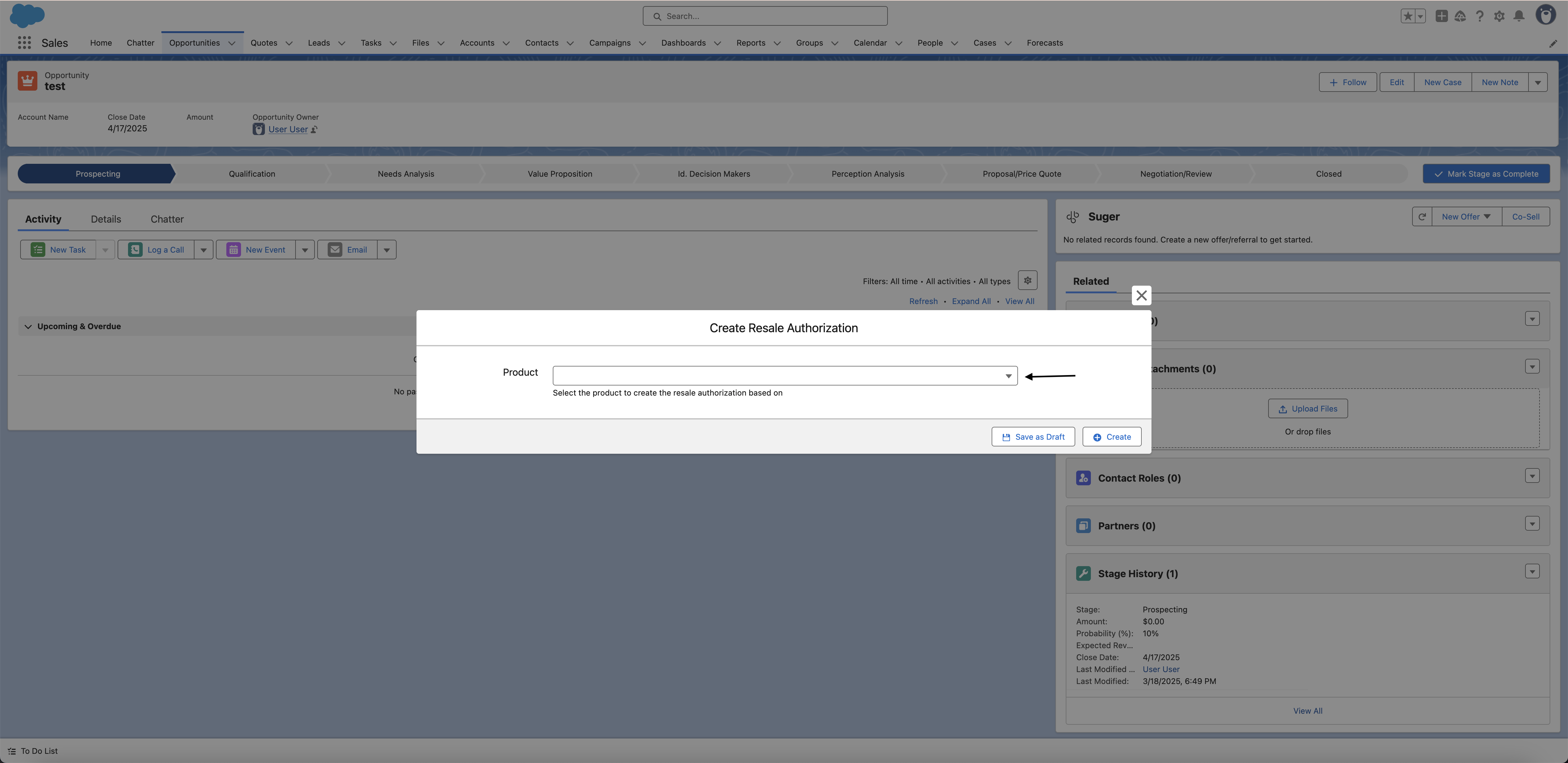 After adding the Suger App to your Salesforce Console, you can quickly create Reseller Authorization from opportunities using the app with ease.