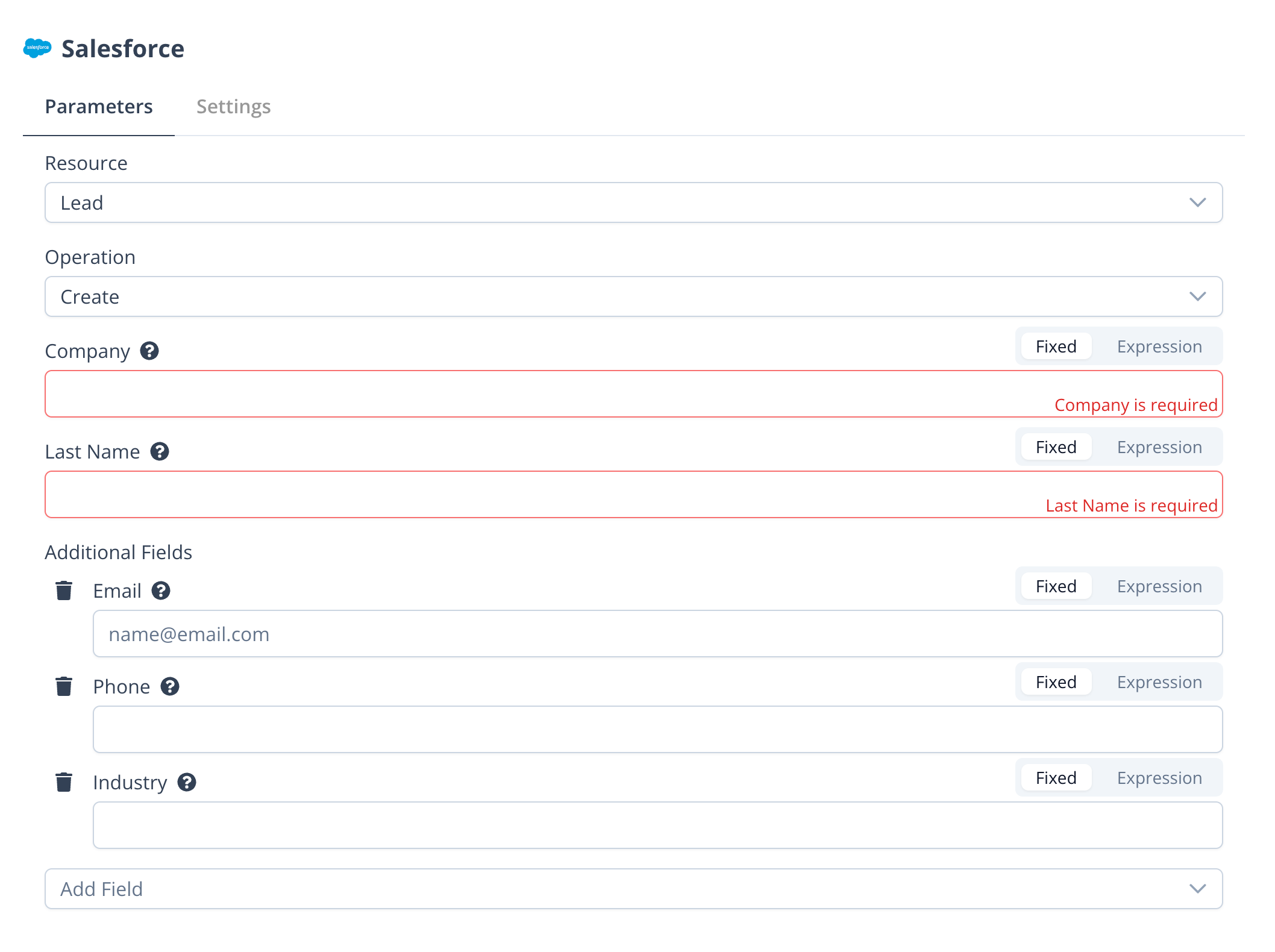The Salesforce workflow node allows you to interact with various Salesforce resources, such as Leads, Contacts, Accounts, and Custom Objects. You can perform operations like create, update, get, delete, and more, directly from your workflow.
