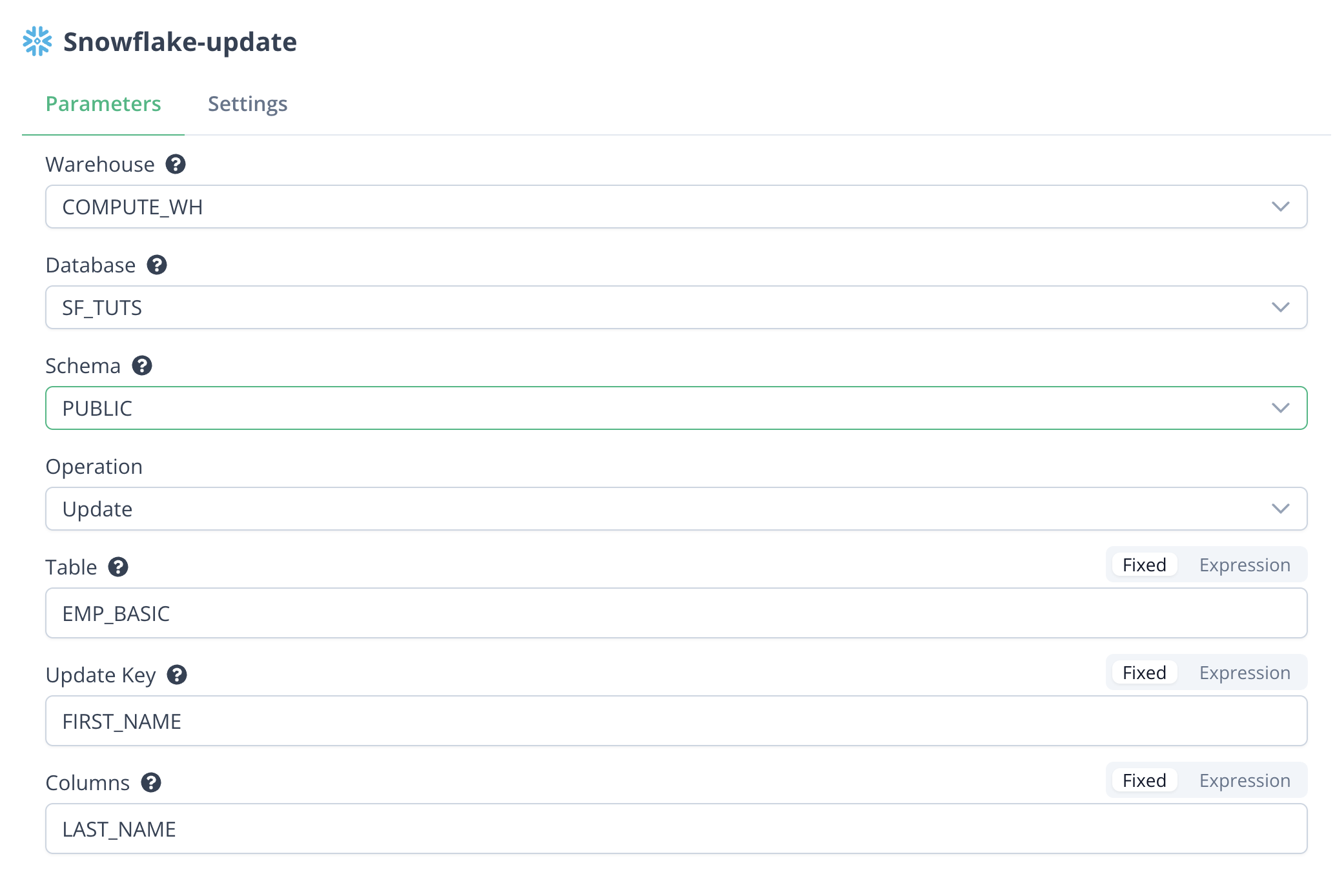 All the Columns (LAST_NAME in this example) of the records that match the Update Key (FIRST_NAME in this example) are updated with the new values.