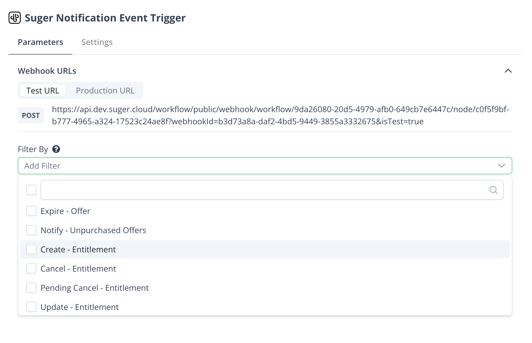 - Filter By Choose the notification event types to handle, the other types will be ignored.
